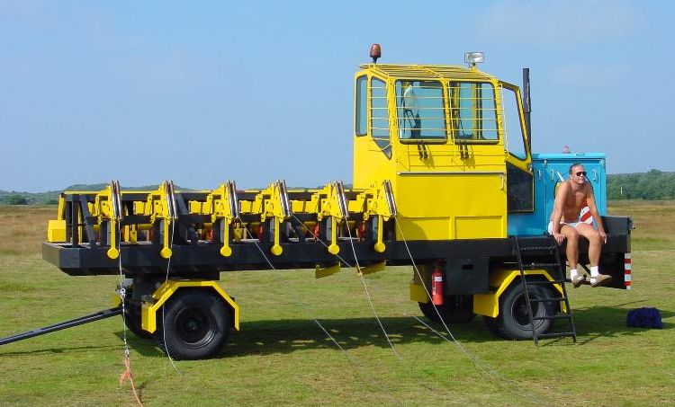Busio 6-Trommel-Querschleppwinde auf LKW-Anhänger |