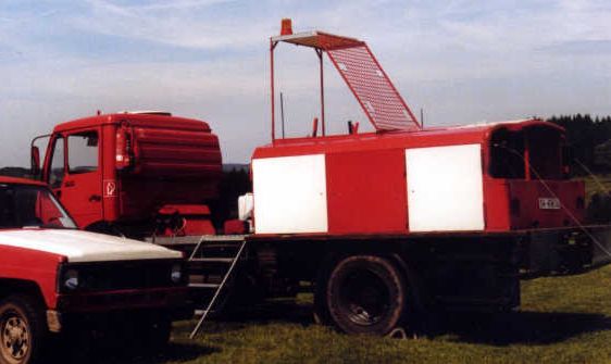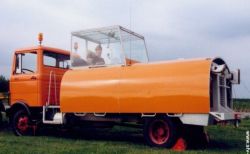 Dunkel-Doppeltrommel mit Eigenbau-Führerhaus auf Bedford Rechtslenker ... in den Sechzigern & Siebzigern Motor: Lincoln V8, 199 kW / 270 PS später: Opel Diplomat V8, 5,4 l, 176 kW / 240 PS |