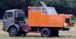 Eigenbau auf BW-Mercedes Baujahr: 1990 Motor: MAN D 2535 M, 12,8 l, 157 kW / 214 PS hydraulische Kraftübertragung bei konstanter Motordrehzahl |