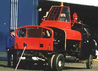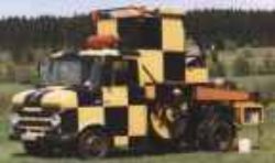 Eigenbau auf Mercedes Motor: Diesel, MB OM403, 235 kW / 320 PS Trommelkupplungen: pneumatisch Bremsen: hydraulische Scheibenbremsen Kennzeichen: SW 8204 |