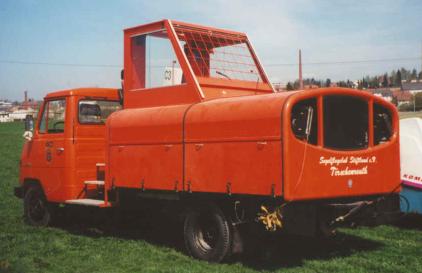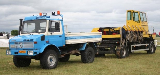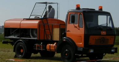 Eigenbau auf ehemaligem Flugzeugtanklaster Motor: Cadillac, 472 ci Treibstoff: Propan-Flüssiggas (Tanks im Anhänger) |