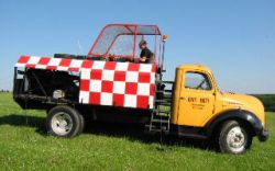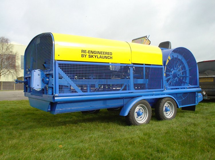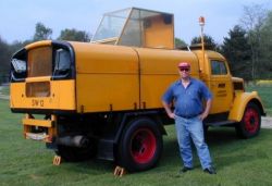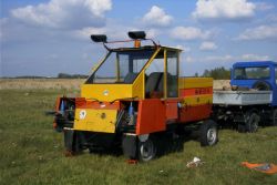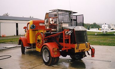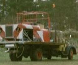 Eigenbau-Doppeltrommel-Querschleppwinde auf Hanomag HE9069 Baujahr: 1969 Motor: GM V8 Turbodiesel, 6,5 l, 149 kW / 200 PS bei 3400 1/min Eigengewicht des Windenaufbaus: 480 kg zul. GG des geschleppten Flugzeuges: 750 kg |